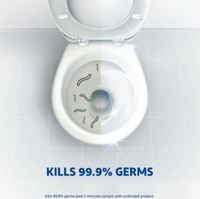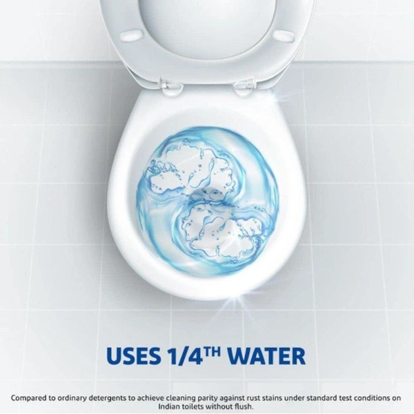 Strategically bent bottleneck shape helps pour the liquid into deep corners under the toilet rim