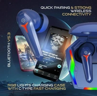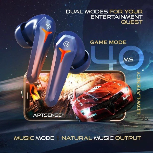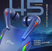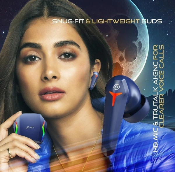 pTron Newly Launched Bassbuds Turbo TWS Earbuds, 40ms Gaming Low Latency, TruTalk AI-ENC Calls, Deep Bass, 45Hrs Playtime, HD Mic, in-Ear Bluetooth 5.3 Headphones, Type-C Fast Charging & IPX5 (Blue)