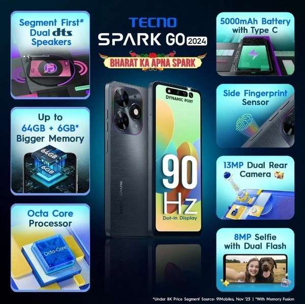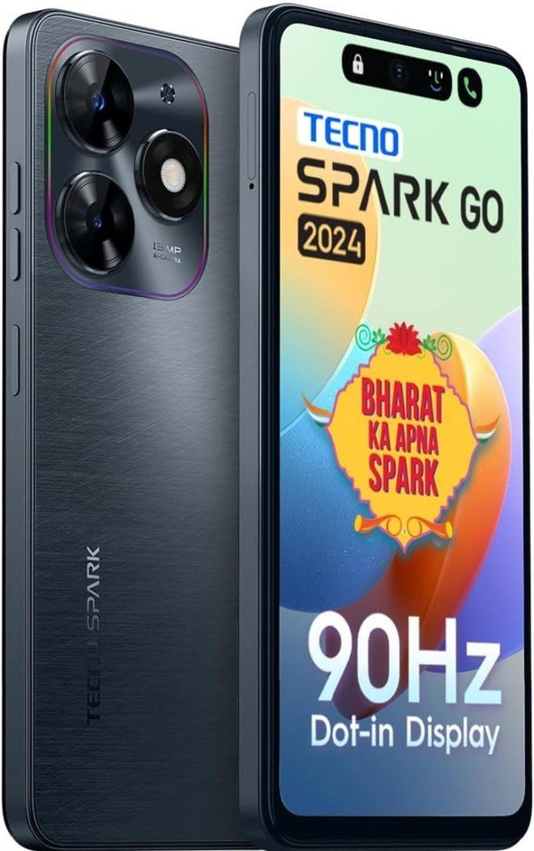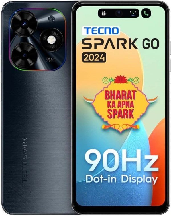 TECNO Spark Go 2024 (Gravity Black,6GB* RAM, 64GB ROM)| Segment First 90Hz Dot-in Display with Dynamic Port & Dual Speakers with DTS| 5000mAh| 10W Type-C| Fingerprint Sensor| Octa-Core Processor