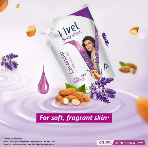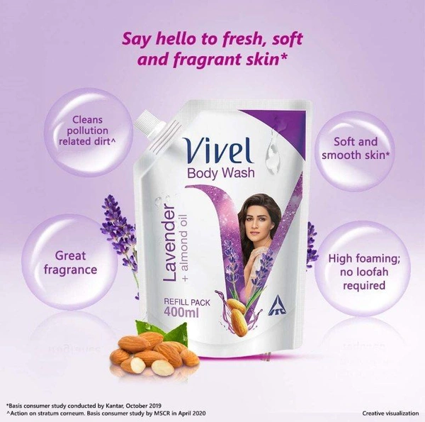Vivel Body Wash, Lavender & Almond Oil Shower Creme, Liquid Refill Pouch, 400 ml